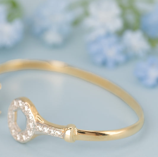 Solid 9ct Yellow Gold Baby / Kids CZ Spanner Bangle