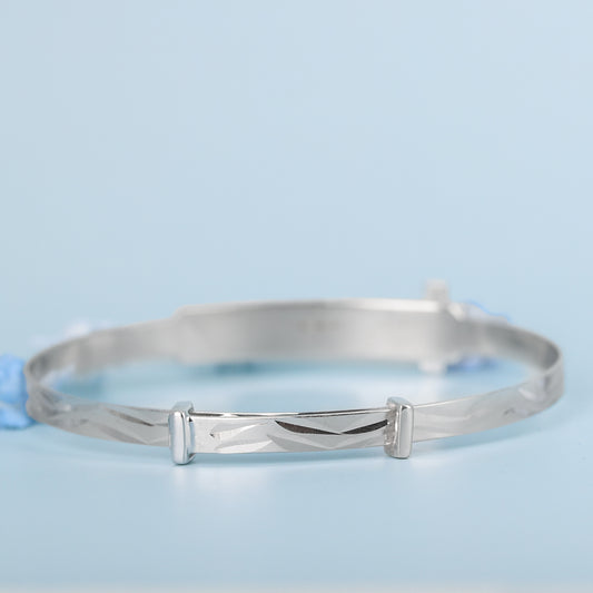Solid 9ct White Gold Baby / Kids CZ Cross Expandable ID Bangle