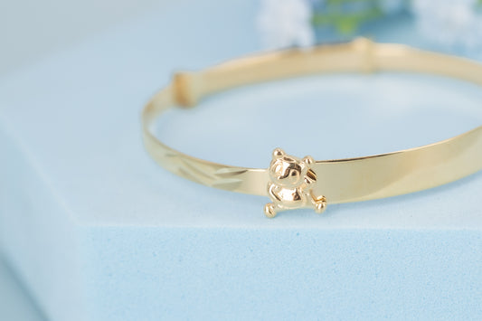 Solid 9ct Yellow Gold Baby / Kids Teddy ID Expandable Baby Bangle