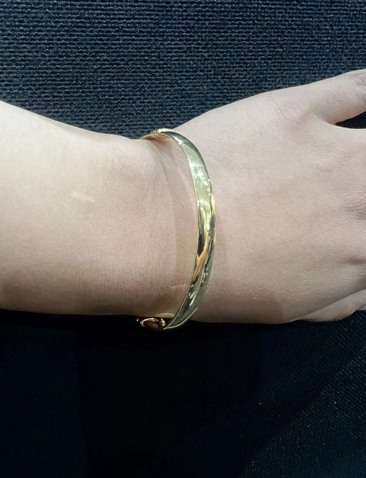 Women’s 9ct Yellow Gold Plain Bracelet - Ladies Gold 6mm Plain Hinged Bangle