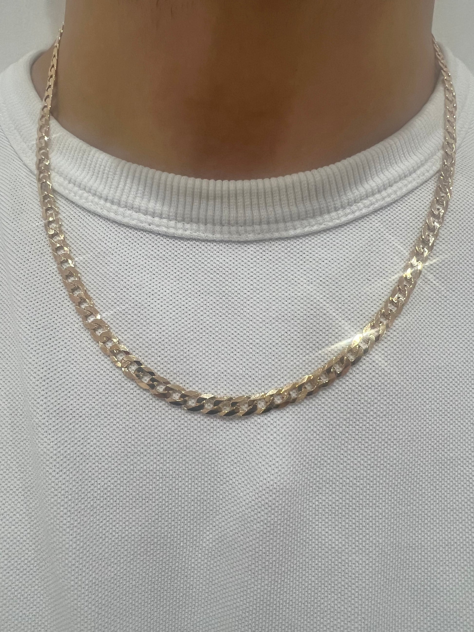 9ct Solid Gold Men’s Chain 22 INCH - 6mm Flat Curb Chain - Full UK Hallmark