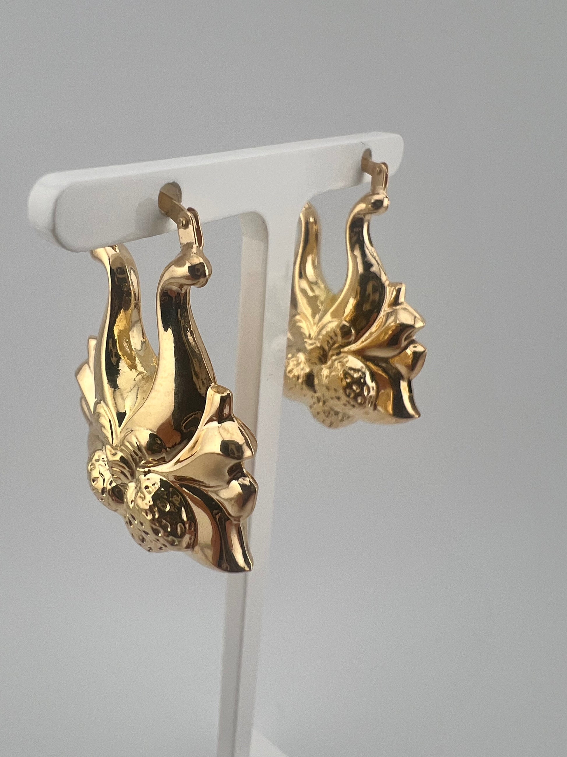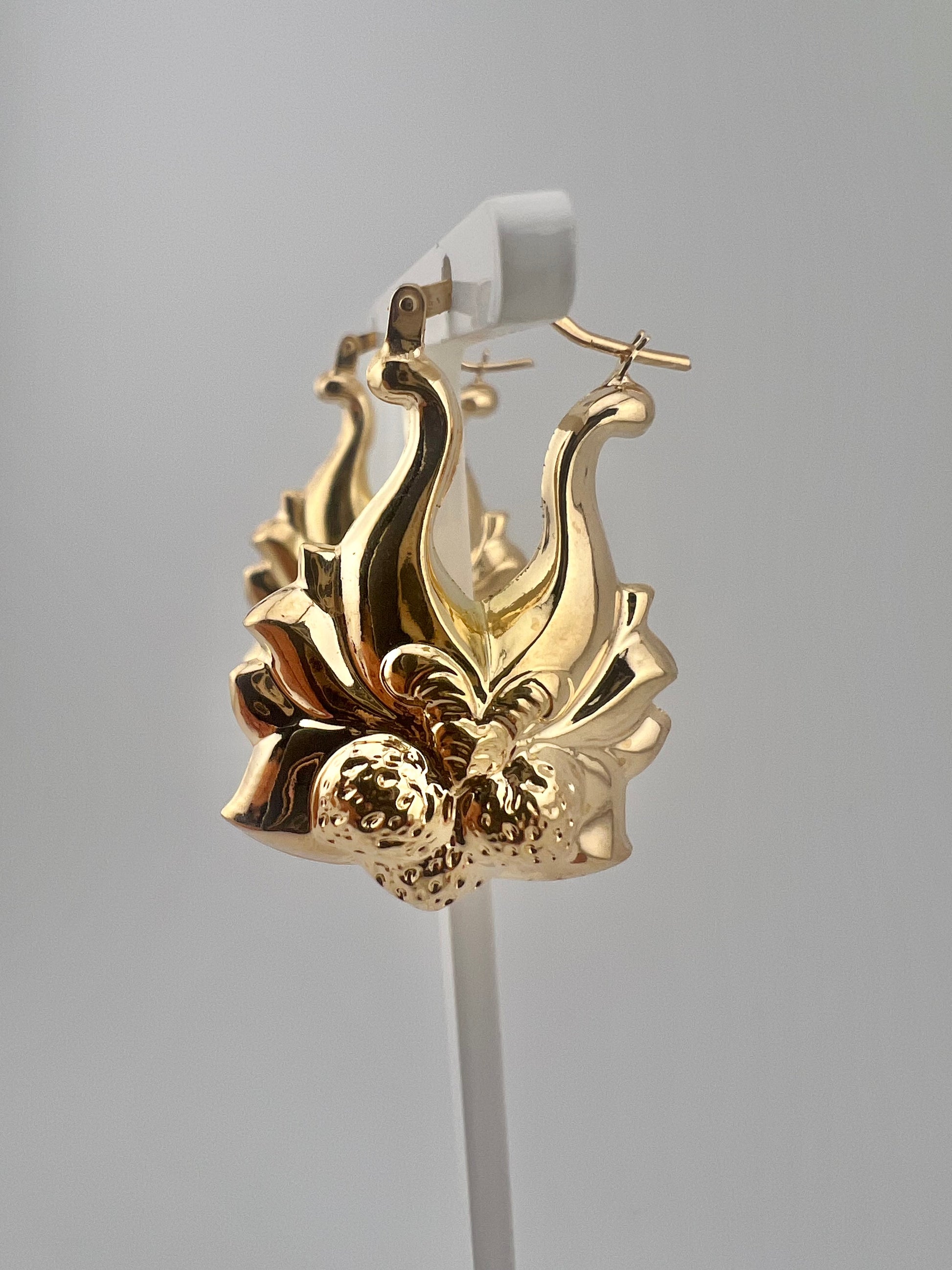 LARGE 9CT YELLOW GOLD STRAWBERRY EARRINGS HALLMARKED VICTORIAN CHUNKY CREOLES